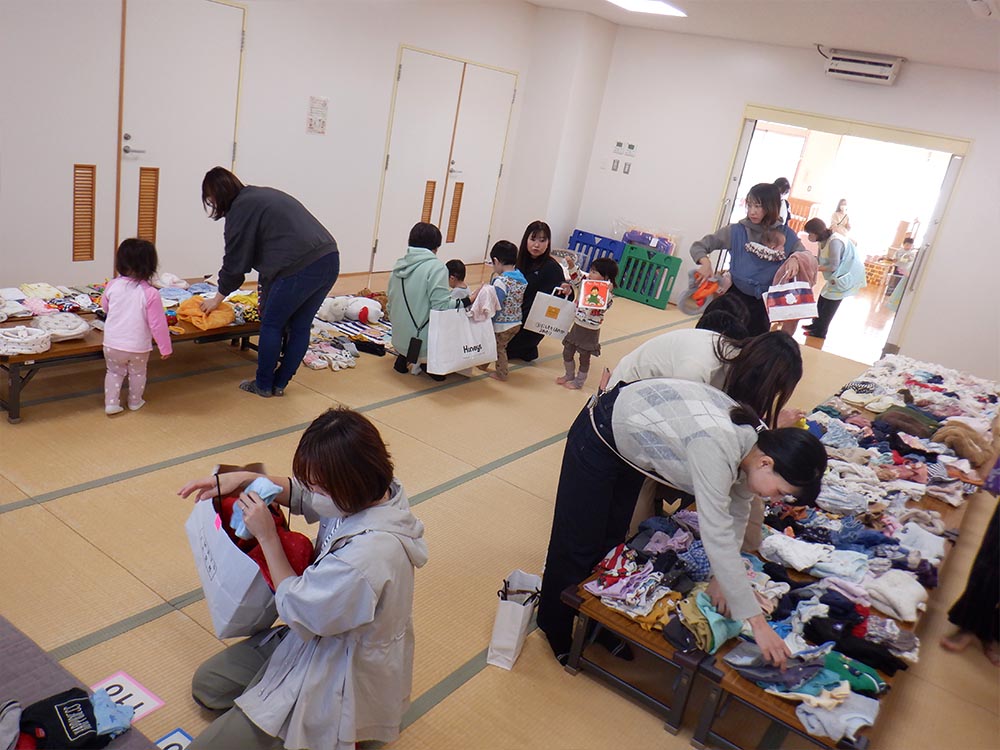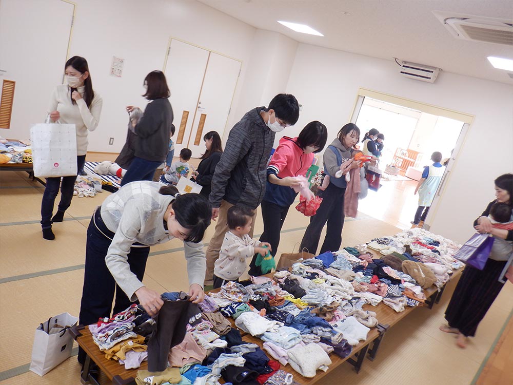 年に1回行っている人気のイベントです!すぐにサイズアウトしてしまう服や使わなくなったおもちゃや絵本などを提供していただき、必要な方に選んで持ち帰っていただきます。参加者の皆様にはたくさんの品物をご提供いただき、本当にありがとうございました。