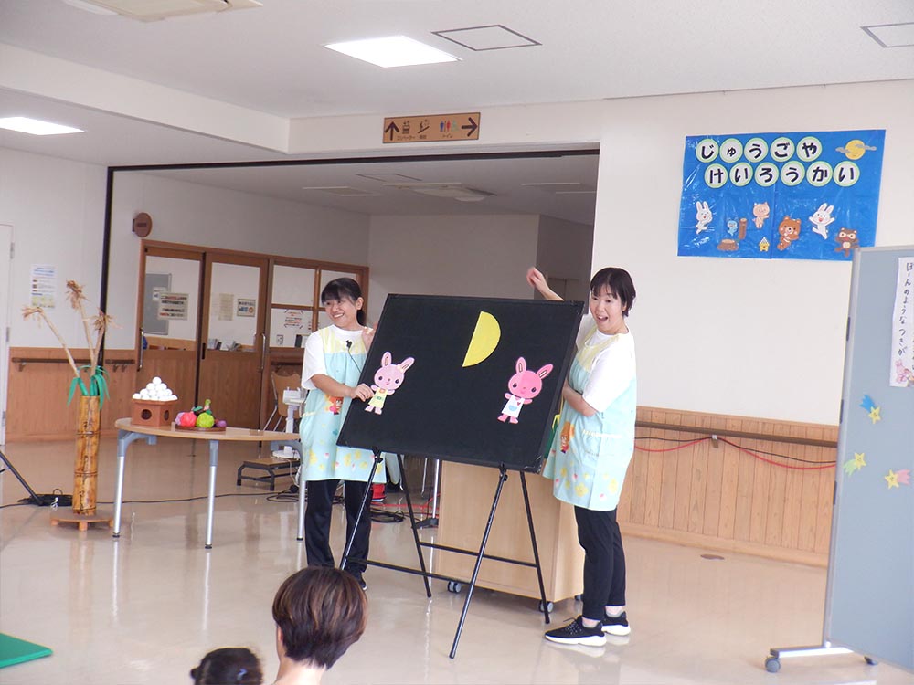みんなで十五夜のおはなしをきいたり、おじいちゃん・おばあちゃんとふれあい遊びをしたりして、楽しく過ごしました♬
