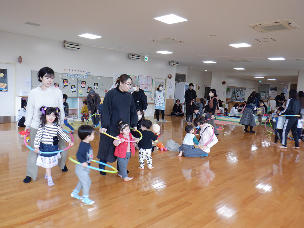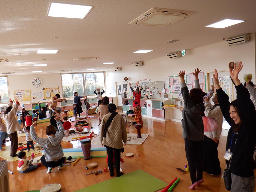 寒いからこそ体を動かそう!たくさんの親子が参加してくださいました。子どもたちの知っている曲に合わせてしっかり体を動かしましたよ!