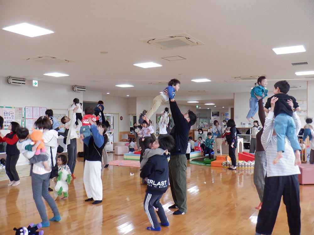 たかい、たかーい!広い場所だからこそダイナミックな遊びも楽しめます。子どもたちの楽しそうな声が広場に響きわたっていました。